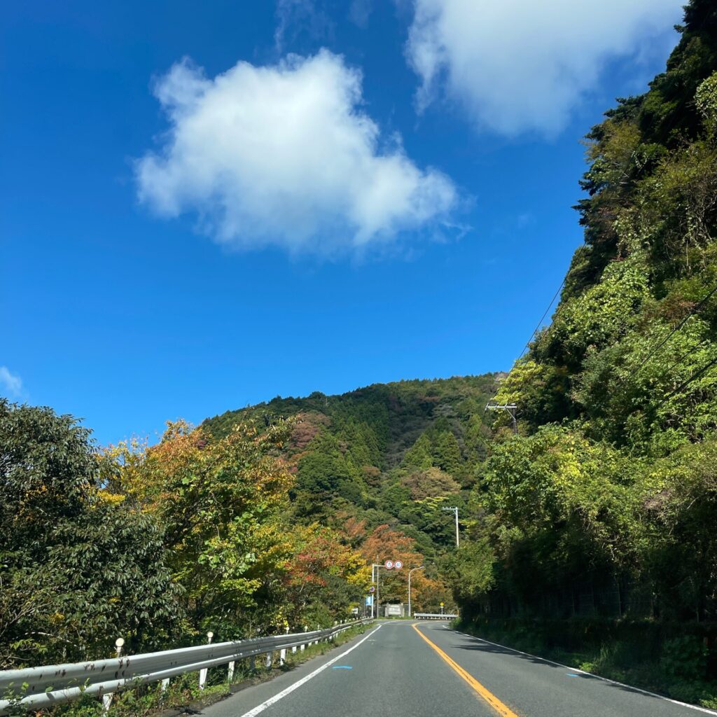 夫の打合せに必要な物を積み込んで下田の家を出発。途中の天城山を通ったら、紅葉が始まっていたわ。この辺りはメリハリのある感じではなく、ボヤ〜ッとした色合いで季節は冬に移ってしまうのが常だけど、今年は例年よりもメリハリの効いた紅葉になりそうだわ。酷暑から、急に寒くなって寒暖差が激しかったからかもね。