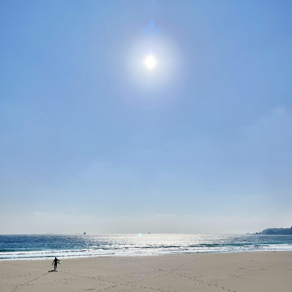 買い物の後、隣の海を見に行ったら、ちょうど太陽が真上にあったせいか、海が眩しいほどキラキラ光っていた。「早春の海」という感じね、綺麗〜。