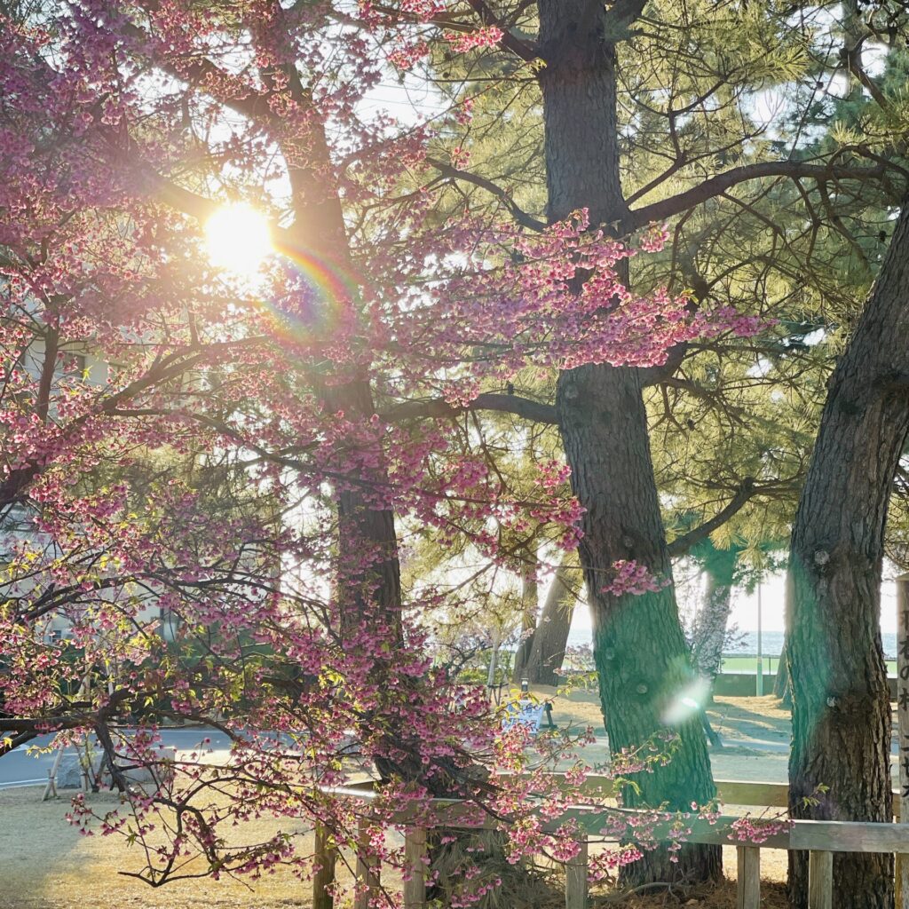 午後、暗くなる前に南伊豆の河頭桜を見に行くことに。もっと咲いているかと思ったのだけど、まだ三分咲きと言ったところかしら。濃いピンク色が可愛い。